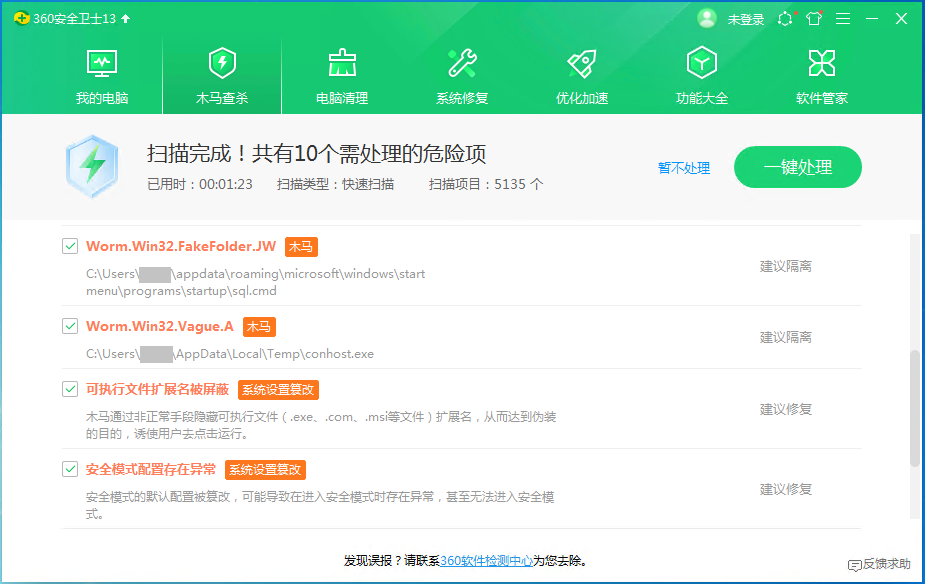 360安全卫士支持上述蠕虫病毒的查杀,若有用户电脑中存在以上病毒现象,用户可以前往360安全卫士官网(http://weishi.360.cn/ )进行下载查杀: